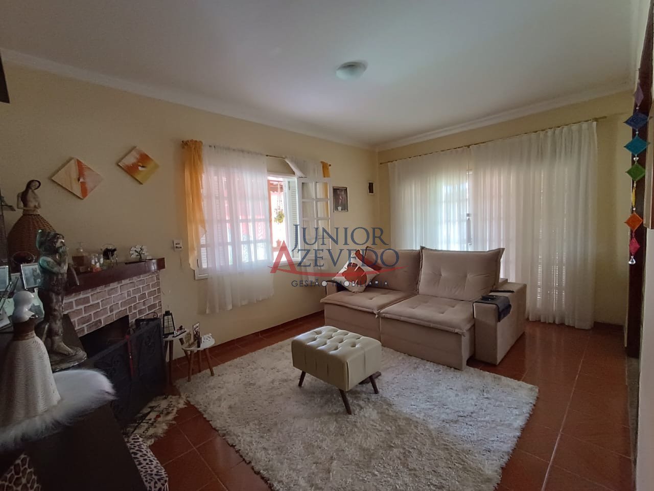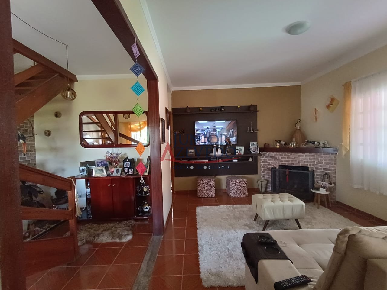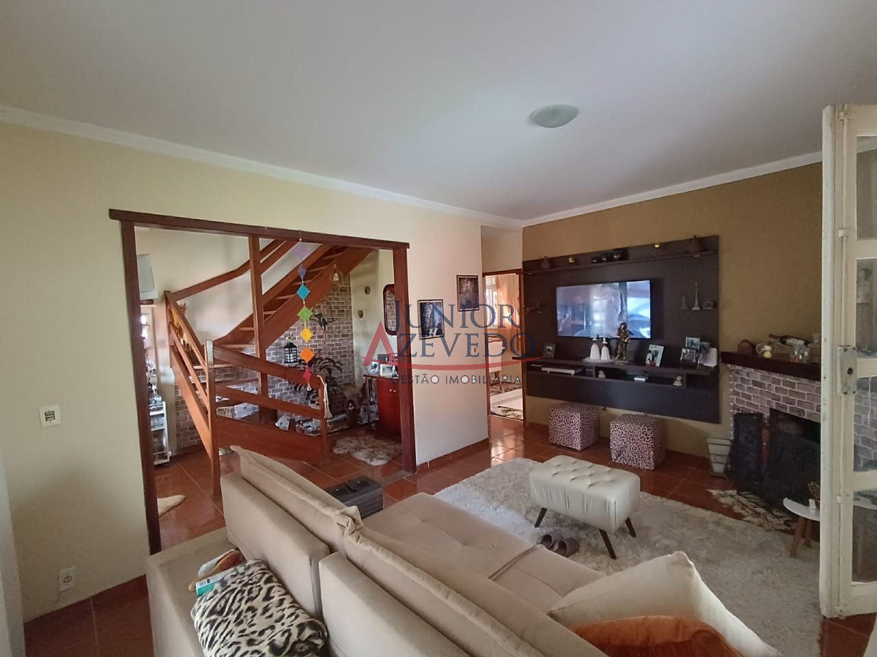 - Sala de estar com lareira e varandão;